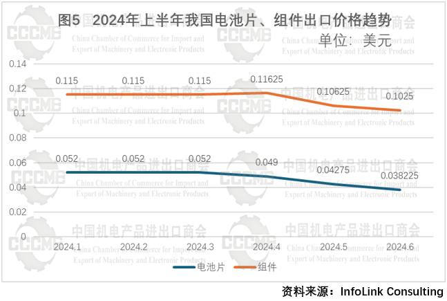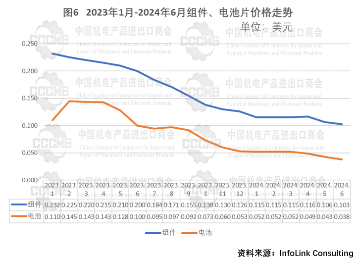 (三)电池、组件环节出口量增价跌,价格无回升趋势,欧盟市场占比下降