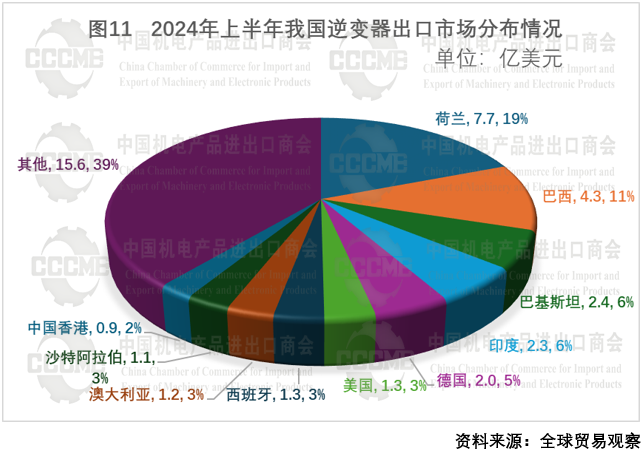 2024年上半年,我国逆变器出口额为40.1亿美元,同比下降34.8%,出口量为2521.3万台,同比下降13.1%。逆变器出口下滑主要由于欧洲市场消化库存压力较大,到2024年6月,逆变器出口额环比上涨18%,出现明显回升,对巴西、巴基斯坦、印度、沙特阿拉伯等国家出口额同比出现大幅增长,预计2024年下半年逆变器出口将呈回暖态势。 数字化转型网(www.szhzxw.cn)