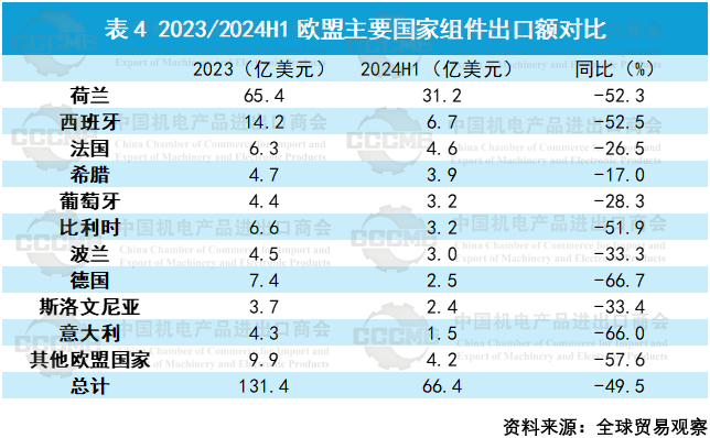 2024年上半年,我国光伏电池片出口额为13.2亿美元,同比下降47.6%,出口量为27.9GW,同比增长38.7%;光伏组件出口额为163.2亿美元,同比下降31.1%,出口量为146.5GW,同比增长33.7%。电池片、组件出口价格相较上年同期降幅均超50%。同期,光伏组件对欧盟国家出口额为66.4亿美元,同比下降49.5%,占组件出口总额的40.7%,占比下滑约15个百分点,出口量约为59.6GW,与2023年同期基本持平。 数字化转型网(www.szhzxw.cn)