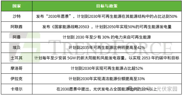 三、中东多个国家制定目标,加速推进能源转型