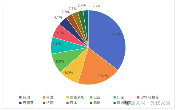 根据中国光伏行业协会 CPIA 的数据,来了解一下 2024 年 1 月至 6 月的组件出口主要市场情况。