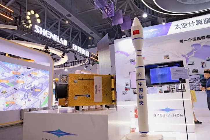 展厅门口1:1打造的WJ-1B卫星模型,是地卫二的AI计算卫星,也是交付给海外国家星座的首星。此外,地卫二在太空部署了算力,给卫星配备了AI大脑——“弦平台”星载智能处理单元。这样,可以直接在卫星上快速处理分析数据,无须将数据传回地面再处理。