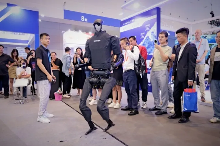 前不久进入生产车间开展实测的杭产人形机器人D11,首次亮相数贸会。这是由五八智能科技(杭州)有限公司面向工业、服务及特种应用而研发的新一代智能人形机器人,可以承担部分强度高、重复高,甚至危险性高的工作。