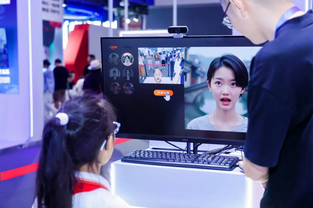中南卡通带来的“苏东坡”AI数字人互动全息舱,通过全息技术实现了与古代文学大家跨越时空的对话;浙江省音乐学院的《光影丹青》沉浸式声景交互展利用虚拟现实技术和空间音频技术,将古琴、笛子等传统乐器的声音与现代电子音色相结合,创造出一个“似实而虚,似虚还实”的音乐世界,让观众仿佛置身于历史画卷之中;华数数字电视传媒集团有限公司的「绘梦师」产品在会展上首发首秀,令人惊艳体验直播流视频实时换脸和深度学习声音克隆技术。