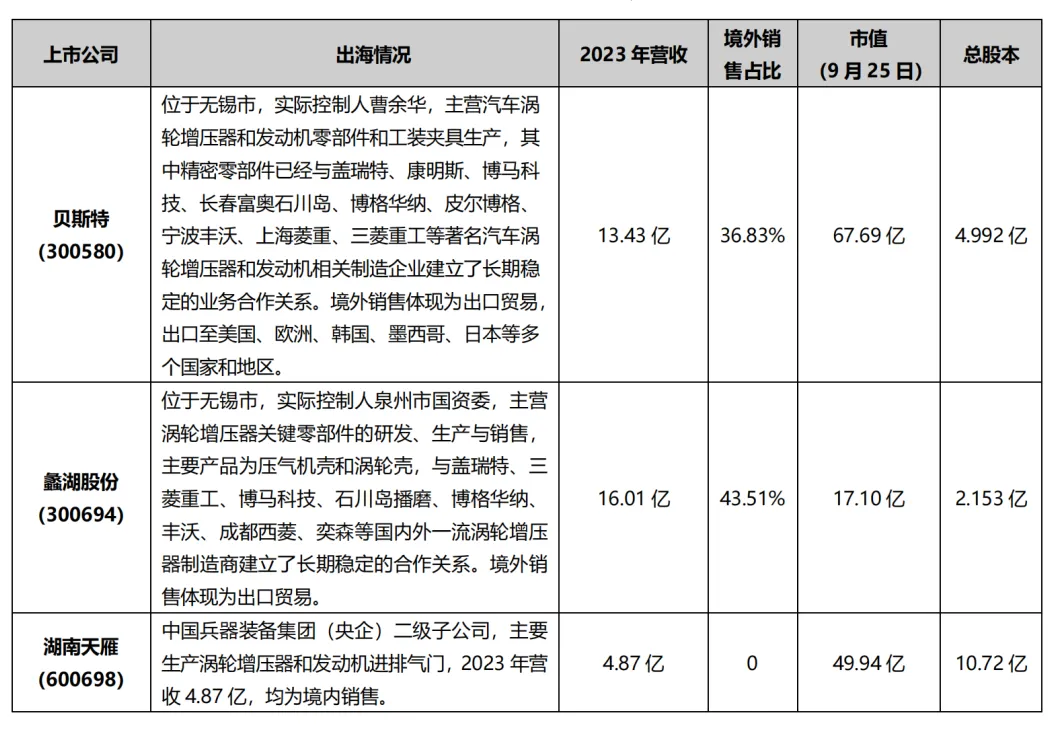 笔者对比了涡轮增压器行业的其他A股上市公司: