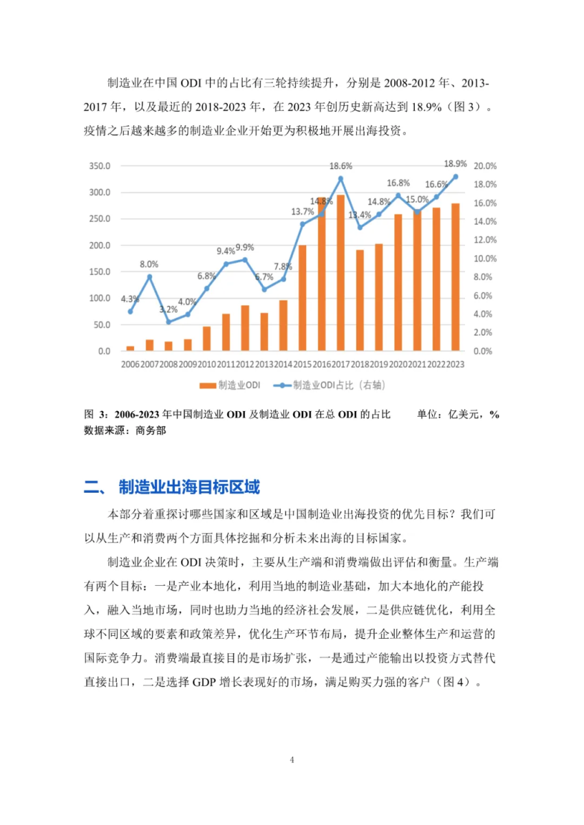 2006-2023 年,中国 ODI(对外直接投资)流量从 211.6 亿美元增长至 1478.5 亿美元,年均增速 12.1%,同期制造业 ODI投资从 2006 年的 9.1 亿美元增长至 2023 年的 279.0亿美元,年均增速 22.3%。