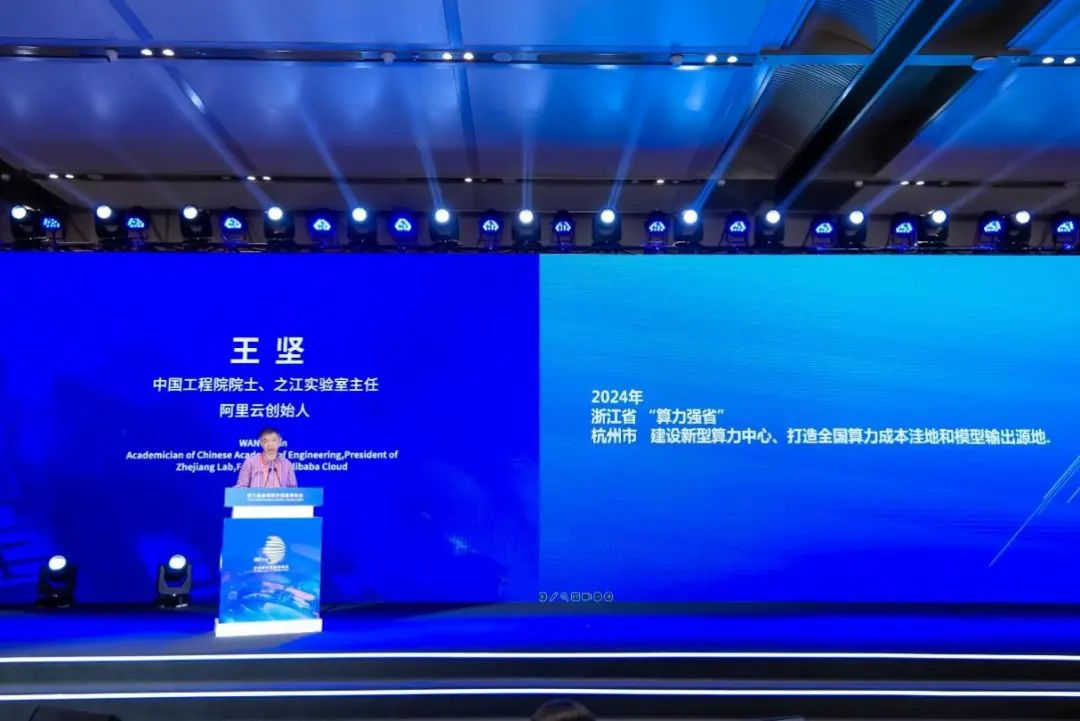 中国工程院院士、之江实验室主任、阿里云创始人王坚发表了题为“AI+,拥抱数字经济”的主旨报告,介绍了人工智能及“人工智能+”应用的现状,以及算力对数字贸易的影响。为应对这一挑战,杭州积极建设新型算力中心,降低成本、提升效能;同时,杭州推出的阿里云开源大模型千问和之江实验室的GeoGPT在国际上获得了认可。王坚相信,随着AI技术的进步,杭州将在未来数字经济中扮演更重要的角色,并推动相关产业发展。