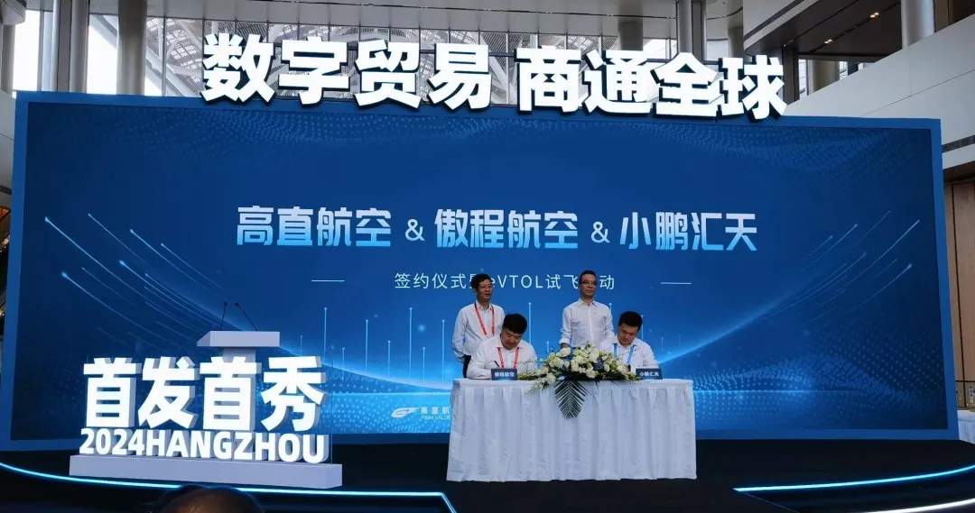 9月27日,在第三届数贸会上,小鹏汇天(广州汇天航空航天科技有限公司)与高直航空&傲程航空现场签署了150架“陆地航母”分体式飞行汽车采购合同。