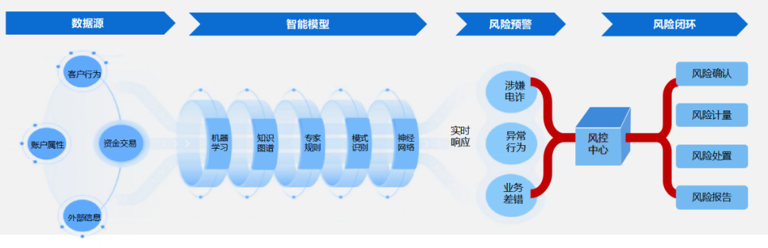 风险管理领域,运用机器学习、知识图谱等先进技术构建涵盖客户行为、账户属性、资金交易等多维度风险特征,覆盖账户开立、变更、使用全生命周期的智能风控体系,实现对涉诈高风险账户可疑交易活动的秒级响应、精准识别和实时管控,涉诈“资金链”治理成效领先同业,高风险账户拦截涉诈资金占比达80%以上,获国务院联席办、人民银行通报表扬。