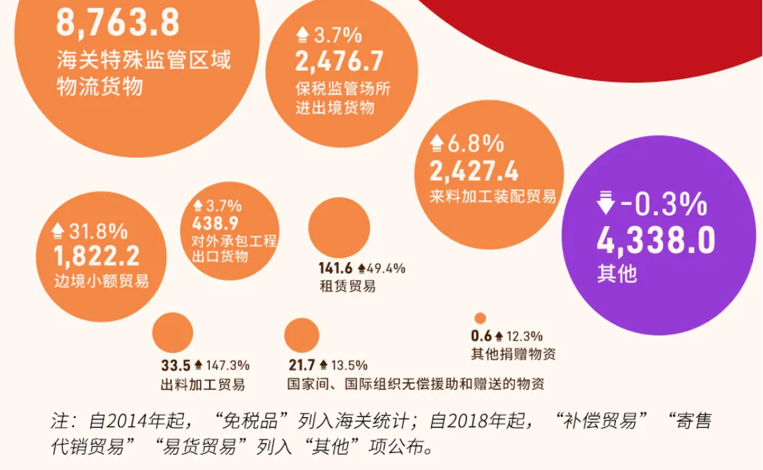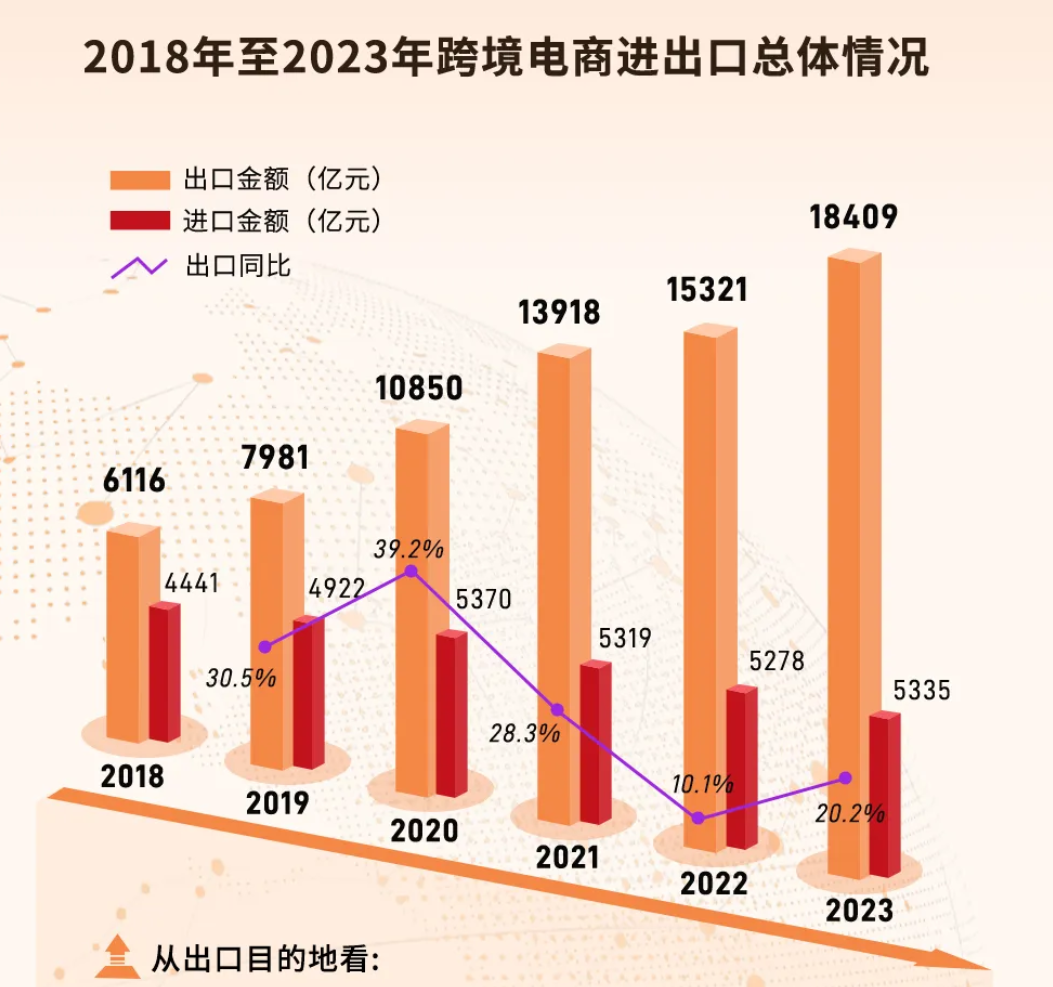 据中国海关统计,2023年,我国跨境电商进出口2.37万亿元人民币,比2022年增长15.3%,占同期我国出口总值的7.7%;进口约5335.2亿元,增长1.1%,占同期我国进口总值的3%。注:根据国家统计局批准的《跨境电子商务统计调查制度》,在境内或境外平台成交并跨境交付的各种电商货物列入跨境电商统计(全业态统计)。