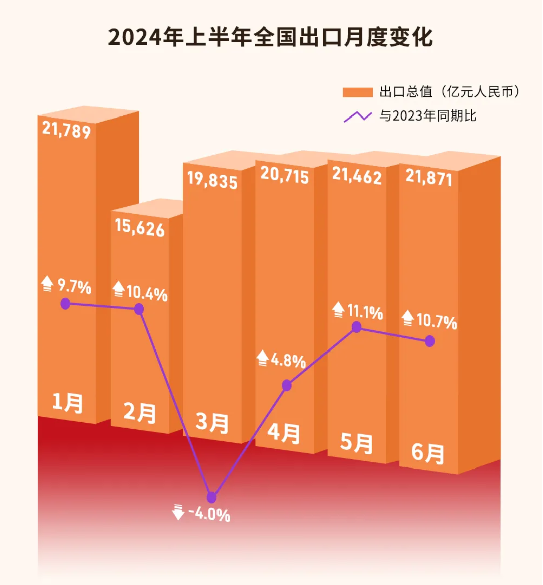 跨境电商在我国货物出口中的地位日益重要它强劲的增长势头也拉动其转变为一种外贸的新常态,为我国出口提供了新的增长点和突破。2024年上半年,我国出口总值已逾12万亿元;较去年同期增长6.9%。在国际贸易环境复杂多变的背景下,我国2024年的货物贸易国际市场份额维持稳中有进,具体有什么体现?