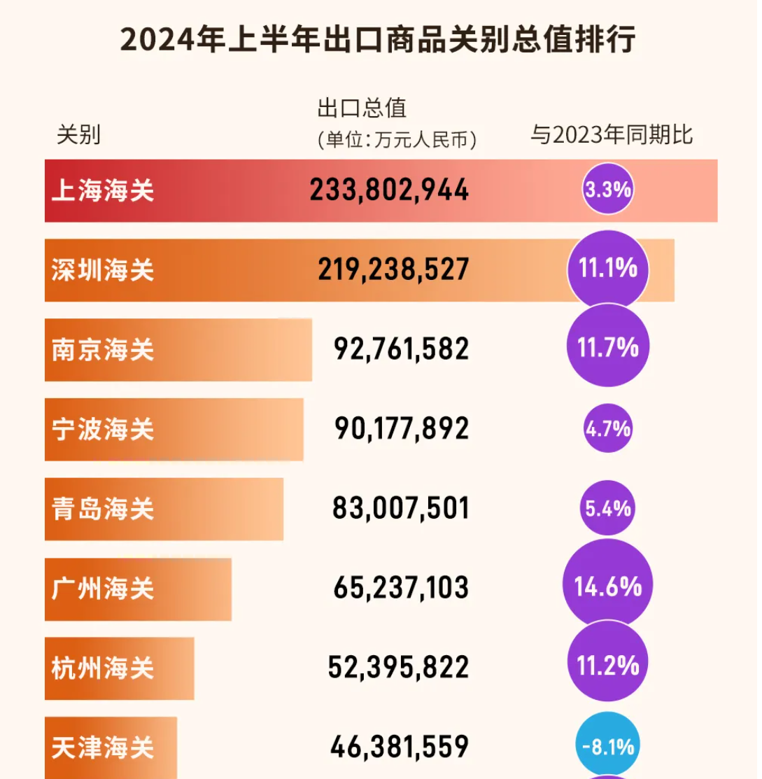 虽然以央企为代表的国有企业,在基建行业等优势领域的“出海”赢得了一定国际美誉,但就出口商品整体规模而言,私营企业占据绝对优势。受全球贸易环境不确定性增加、供应链重构以及国际贸易摩擦等因素影响,上半年有不少企业在商品出口方面出现较大的业绩波动,但仍有一些企业通过积极寻求海外市场拓展,不断提升技术创新实力、加强品牌建设和国际化战略,取得显著成绩。