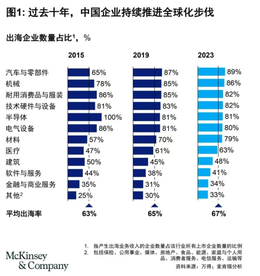 中国企业出海已是大势所趋。无论是为了寻找新的增长机会、实现技术创新、寻求更低成本的劳动力和原料,还是为了配合链主做好海外配套服务,应对贸易保护主义抬头和国际贸易壁垒增加,出海都是企业拓展业务版图的关键路径。当前部分领先中国企业在非本土市场的收入已经占到了30%-40%而这一比例在成熟的全球化企业中能达到80%,中国企业出海依然潜力无限。越来越多企业认识到,出海不仅仅是寻求全球布局,捕捉海外市场机遇,打造全球品牌的策略性选择,而是企业打造国际竞争力的关键抓手(图1)