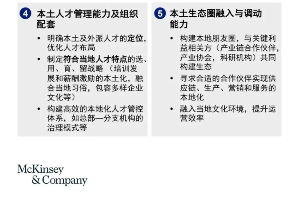 人才困境一方面来自定位模糊,招聘难。由于缺乏对本土人才市场供给特点的理解,出海中企通常很难快速吸引到本地中层人才及执行团队。例如,某互联网巨头2015-17年构建海外云业务数据中心和研究院时,照搬国内标准,招聘人工智能、云计算、区块链等领域的本土技术和销售人才,要求中层人才具备综合能力;然而当地市场人才供给主要为专业细分人才,招聘困难,且引入的中层人才也多因不适应职责需求而离职。所以该公司后来选择与当地大学合作培养、向企业输出优秀人才。另一方面则来自管理难、沟通执行难。由于缺乏对当地风俗文化、工作生活习惯的充分理解,出海中企也面临很难快速调度和管理当地人员的挑战。