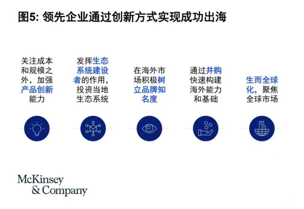 尽管困难重重,我们也看到部分领先企业走在出海前列,并通过创新方式实现快速发展,基于对这些领先企业最佳实践的观察和研究,我们提炼出一些成功因素,供其他致力于出海的中国企业借鉴(图5)