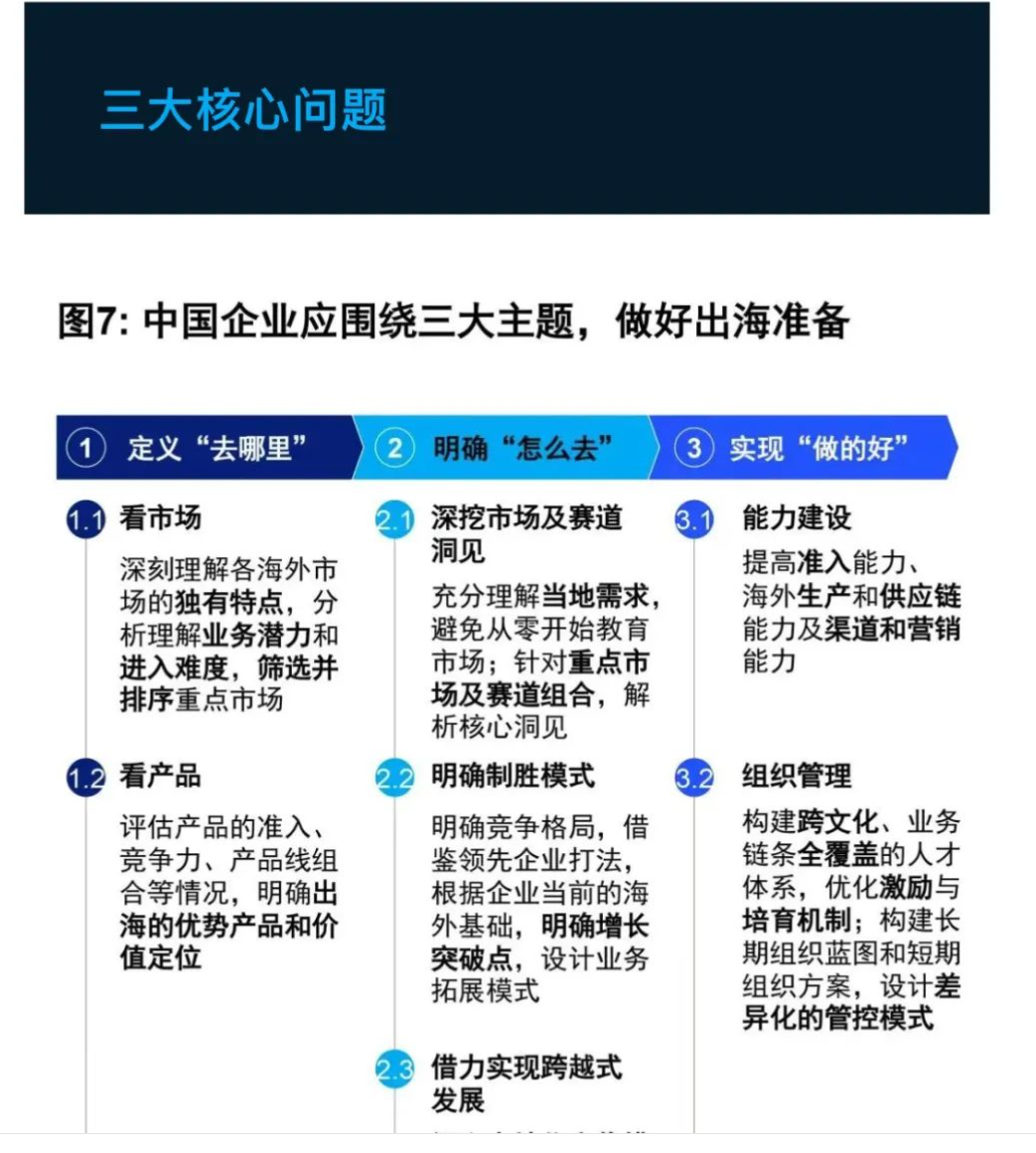 中国企业出海之路任重道远,无论是为了实现短期速赢(锁定已明确的重点方向,快速识别机会,并推动落地,实现突破),还是谋求长期发展(明确战略路线,锚定核心市场及产品,优化资源配置,完善能力建设,实现1到100的发展),企业都应谋定而后动,在充分评估海外市场挑战的前提下,提前制定应对之策。并能在出海过程中保持开放心态、敏捷行动力,根据市场情况随时挑战策略,方能在海外市场乘风破浪直挂云帆。