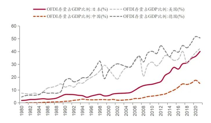 上世纪90年代后日本OFDI存量占GDP比重快速提升