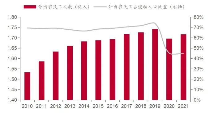 我国外出农民工占全国流动人口比重一度超过70%