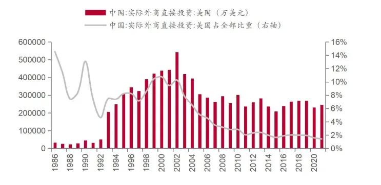 2000年以来中国外商直接投资中美国投资占比快速下降