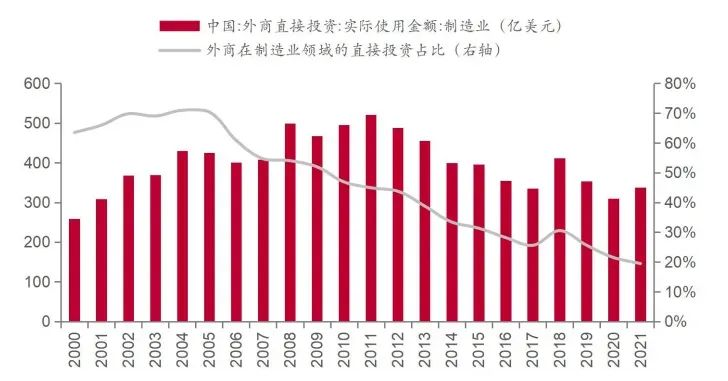 外商在制造业领域的直接投资占比明显萎缩