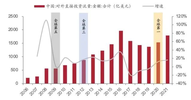 近年来我国对外直接投资流量持续加码
