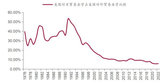 美国对日贸易赤字占美国对外贸易赤字比例于1991年达53.42%