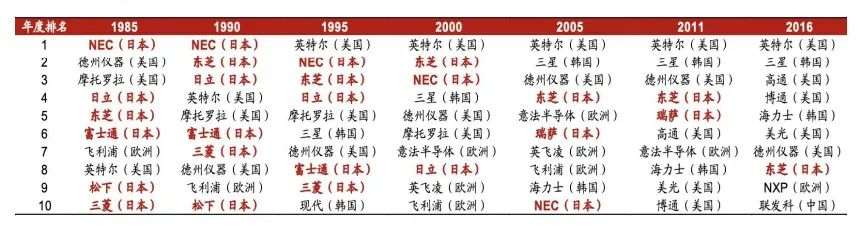 世界前10名半导体厂商变化