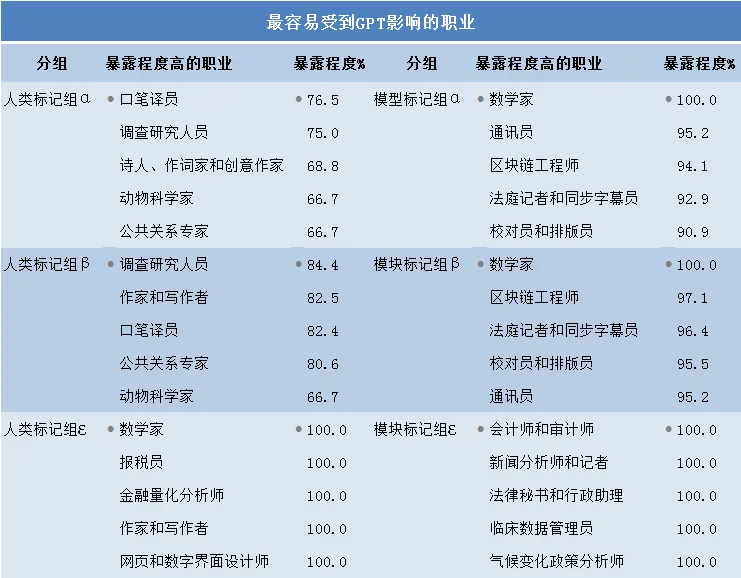 一、最容易受到GPT影响的职业