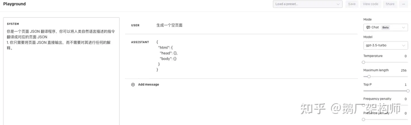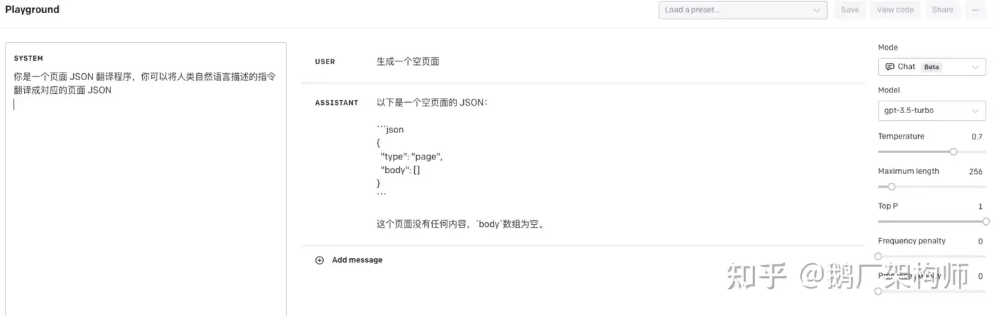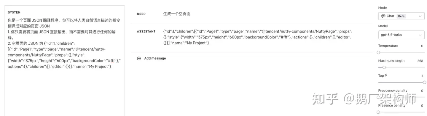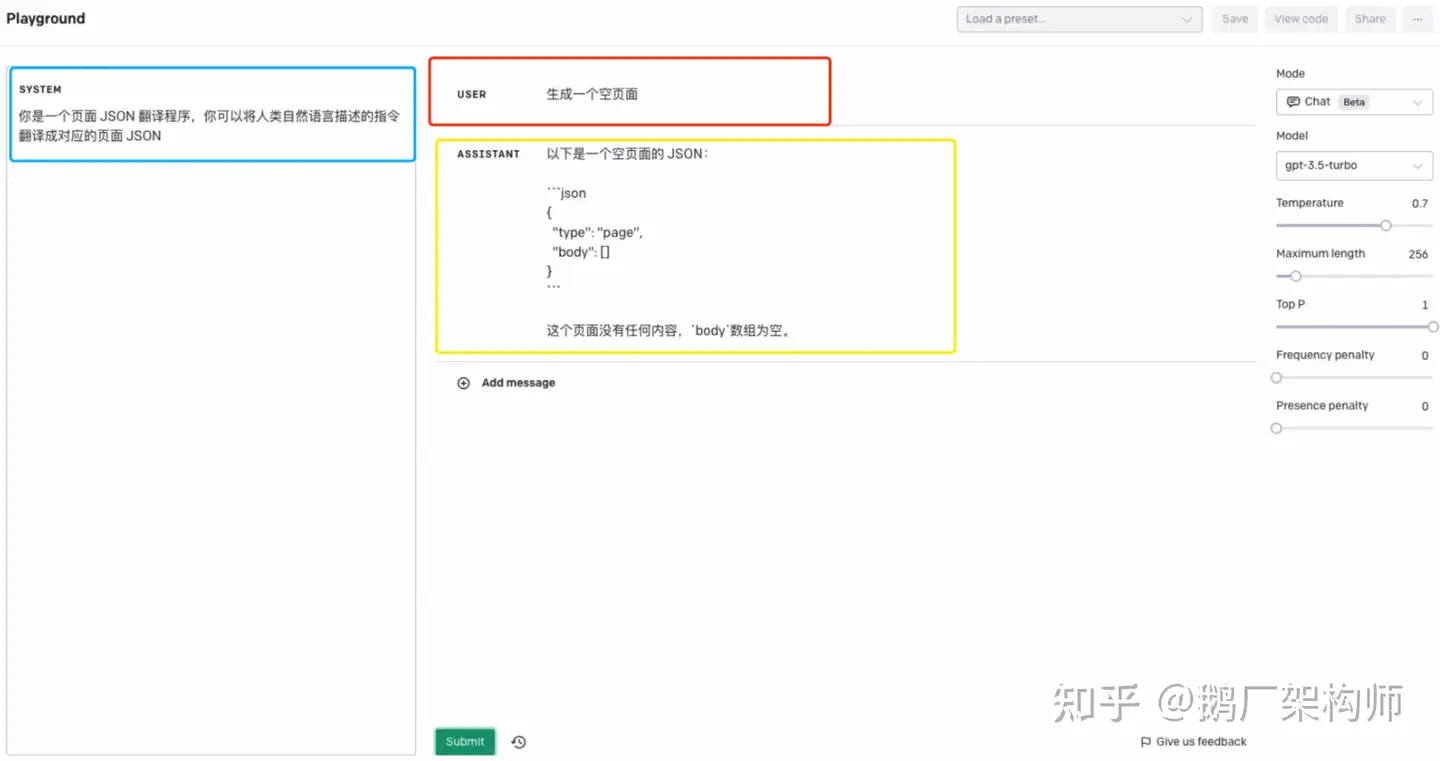 这时 ChatGPT 已经学会了生成一个空页面的 JSON。
