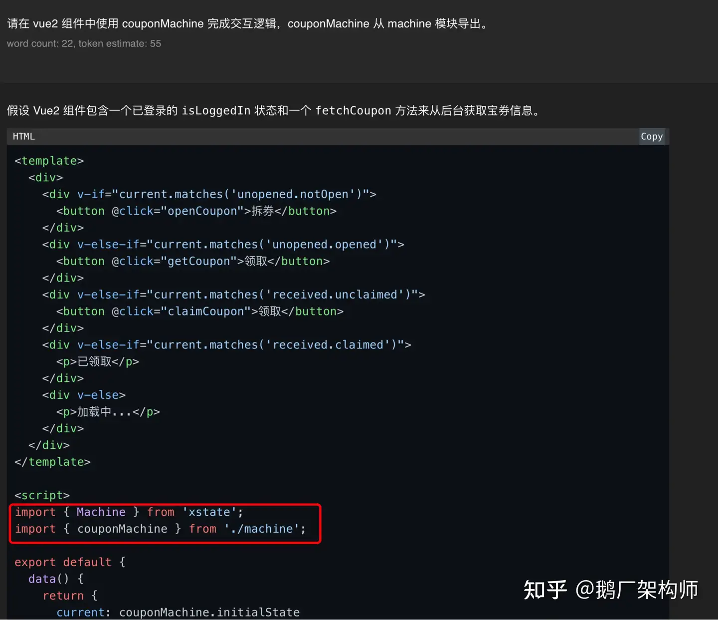 如果想要 ChatGPT 能识别更多组件,我们只需要给 ChatGPT 喂更多描述组件的数据。tip: 将限定上下文翻译为英文,ChatGPT 识别更精准。