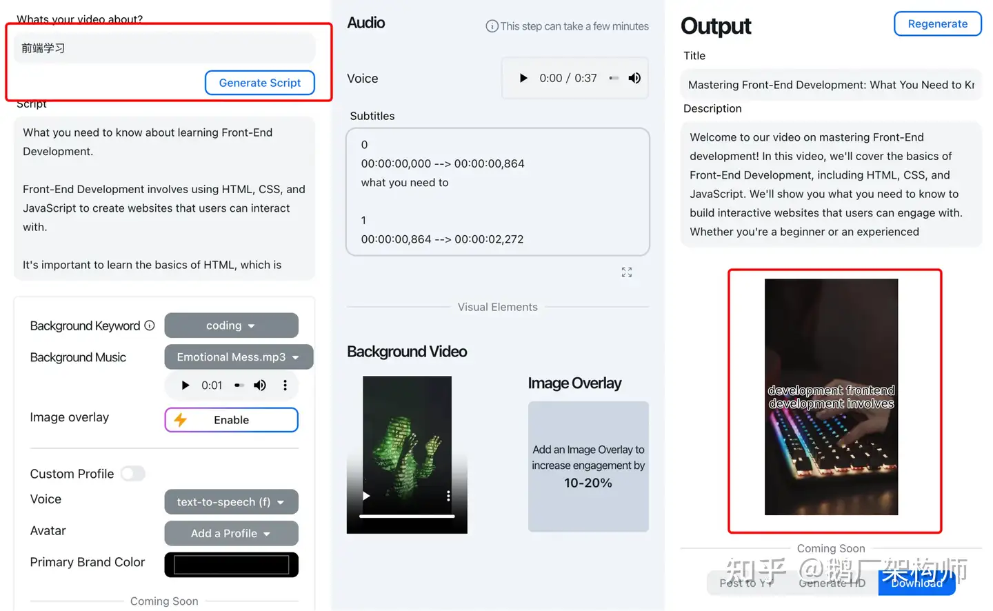 AI 生成视频的产品有 QuickVid,用户输入一段文字描述,模型会生成一段流畅的视频,还可以选择视频的风格和背景音乐等。