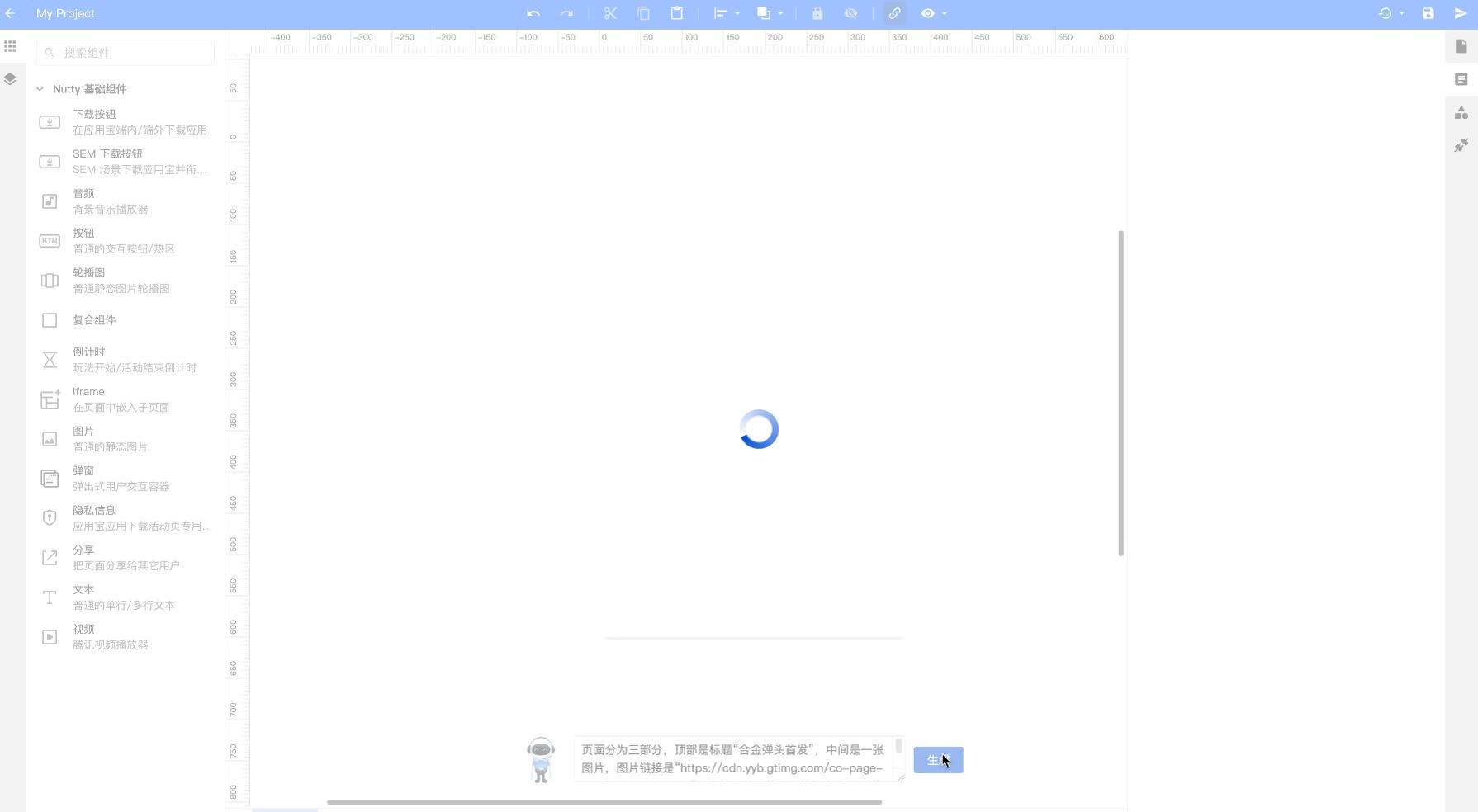 2. 空页面的 JSON 为 {"id":1,"children":[{"id":"Page1","type":"page","name":"@tencent/nutty-components/NuttyPage","props":{},"style":{"width":"375px","height":"600px","backgroundColor":"#fff"},"actions":{},"children":[],"editor":{}}],"name":"My Project”}