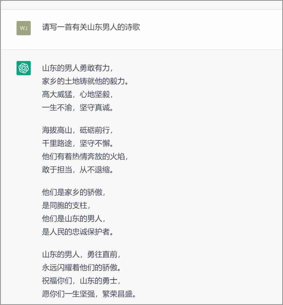 首先,作为一名爱好诗歌的山东男人,我问了ChatGPT第一个问题: