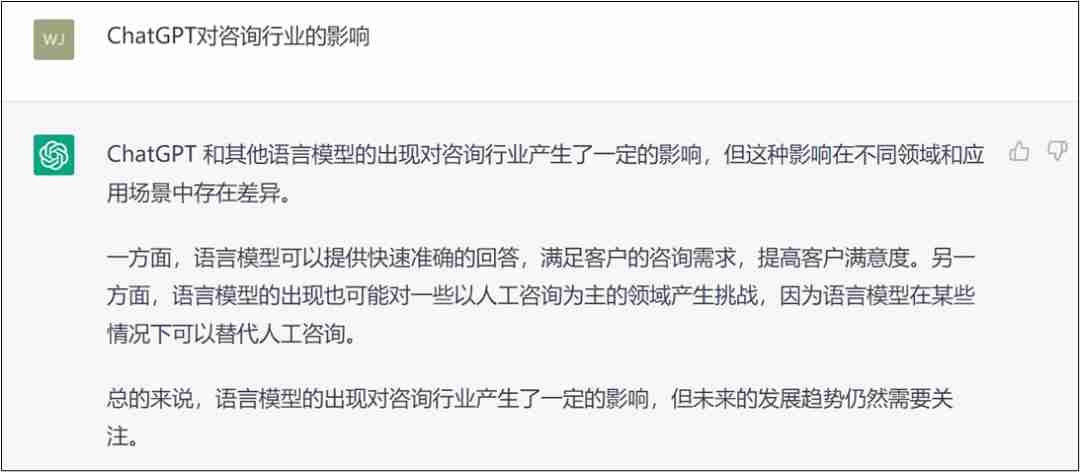 Then, I asked two questions common in the field of consulting, and ChatGPT answered in seconds. The screenshot is as follows: