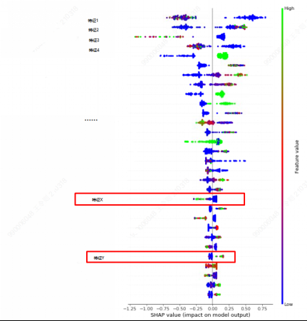 信贷智能模型工厂中的小额消费贷款产品响应模型,面向网捷贷白名单客户预测,目标是找到借款需求较高但仍未申请的客户。采用XGBoost模型,大幅提高营销成功率,降低营销成本。此外,针对该模型采用可解释性技术对XGBoost完成模型的可解释性探索。一方面,更好的可解释性可以为一线营销人员提供更多依据,使营销人员有的放矢,直击客户痛点。另一方面,唯有具备可解释性才能让模型拥有更多应用场景。某营销模型的特征影响力全局图示意图如图3所示,全局图为每个样本绘制其每个特征的SHAP值。观察图3可发现,不同特征对其营销成功概率的正面及负面影响。通过可解释性探索,可帮助业务人员更直观更深刻地理解模型的运行机制和业务依据。增强AI模型的透明可解释性,是增强人工智能使用信心的重要方面,也是其推广应用、健康发展的助力。