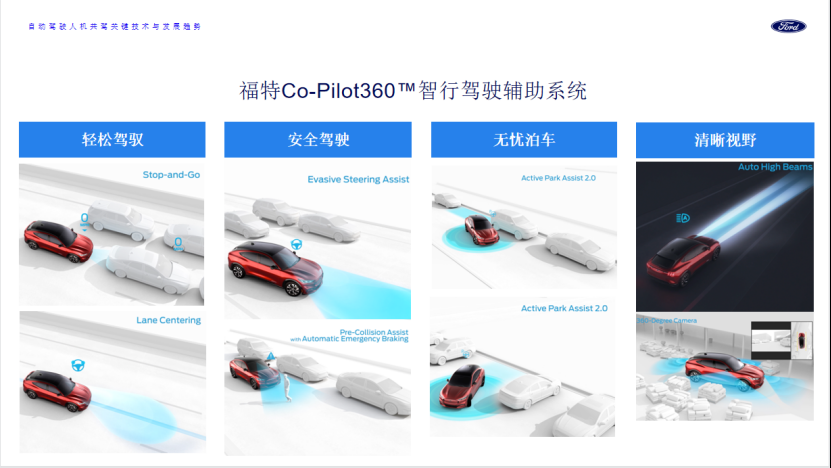 福特坚持从用户使用场景出发,开发推出了福特Co-Pilot360™智行驾驶辅助系统,其中包含4类功能:轻松驾驭、安全驾驶、无忧泊车和清晰视野。并进一步推出了福特BlueCruise主动驾驶辅助系统及变道辅助和智能动态避让等功能。 数字化转型网www.szhzxw.cn