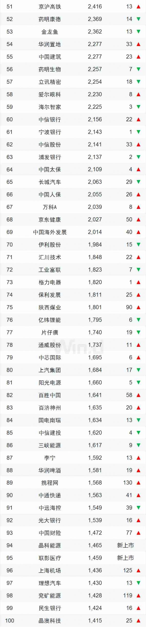 As of Dec 30, 2022, a total of seven companies were worth more than 1 trillion yuan, two fewer than last year. There are 76 new faces in the top 500, among which 14 newly listed companies include Jinkosolar, United Image Medical, Haiguang Information, Sunshine Insurance, All Cloud, Huada Jiutian, Capital Securities, Huada Wisdom Manufacturing, Yu Neng Technology, Huaxia Ophthalmology, Hongjiu Fruit, Zhongfu Shenying, Guobo Electronics, Sany Zhongneng, etc. The rest of the companies were promoted due to market value growth.