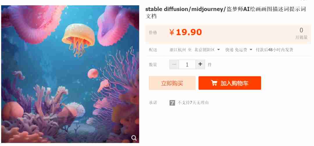 In addition, because some foreign AI painting websites have strict requirements on keywords, and then in Taobao and other e-commerce websites, a batch of AI drawing tips were born to sell “advanced, simple, creative”, the general price is between 10 yuan and 20 yuan.