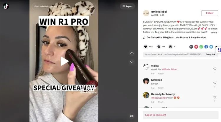 “我们也在通过TikTok平台建立品牌的消费社群,AMIRO现在超过60%的海外市场都在北美,而TikTok在北美的用户规模已经非常‘恐怖’了,目前AMIRO的尝试是通过参加一些挑战赛,邀请UGC用户与我们共创视频内容,借此来建立品牌与消费者的连接。”AMIRO相关负责人告诉品玩,虽然AMIRO也在试水TikTok内容营销初期,但已将与TikTok社群用户的长线互动,列入品牌战略之一。
