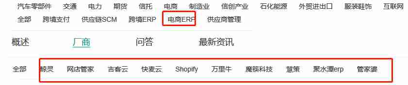 - 电商行业ERP主要玩家如下: