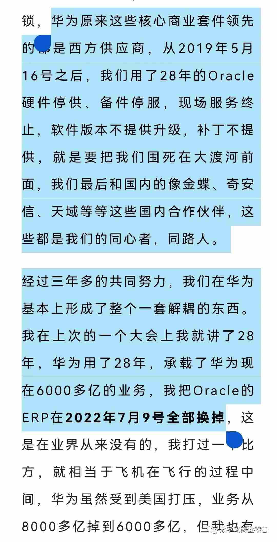 Let’s take a look at the context of the conversation. Ren always talked about being sanctioned by the United States, and then talked about the alternative development of components in the “domestic alternative”. Ren made a general explanation, which was a public confirmation that he had gone to “Oracle EBS”.