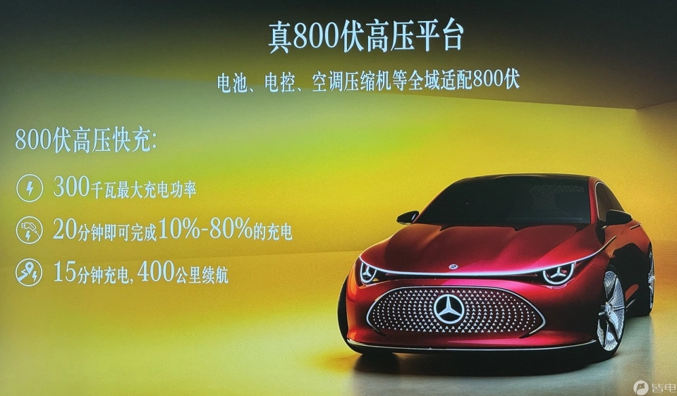 除了智能化以外,奔驰还在加速电动化转型,而且是纯电、插混两手抓,两手都硬。奔驰为其纯电车型研发了全新的两挡变速箱,能实现电池到车轮93%综合能量转化效率,新车纯电续航有望突破750km(WLTP工况),能耗低至12kWh/100km。开发全域800V高压系统,能完成最大充电功率300kW,20分钟完成10%-80%电量补能。