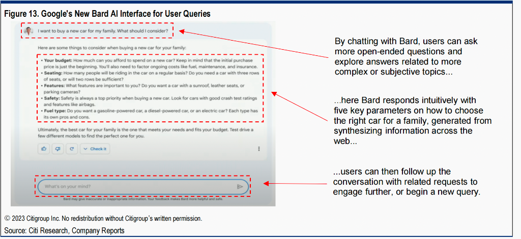 在花旗看来,生成式AI正在重新定义搜索,是互联网时代最重要的变革之一。
