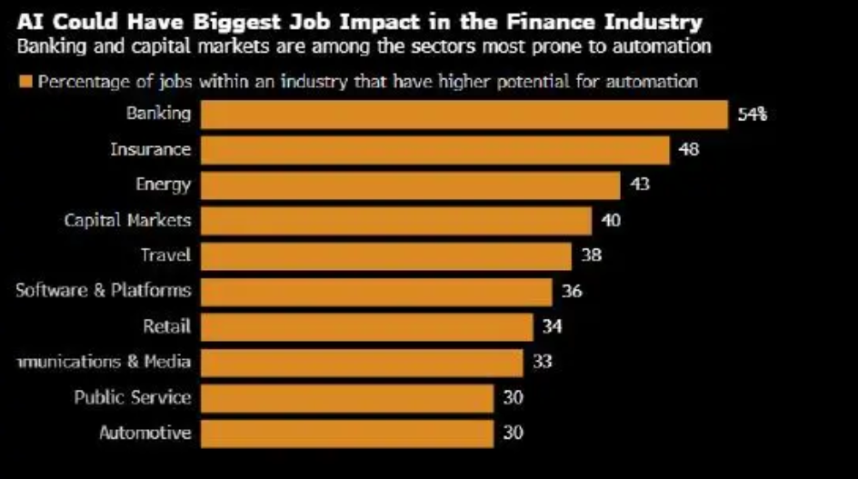 花旗表示,银行业被人工智能取代的工作岗位可能比其他任何行业都多,因为这项技术势将颠覆消费金融并提高员工的工作效率。