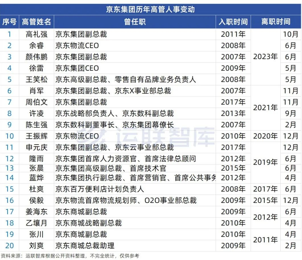 除了上述列举出的京东高管离职事件,京东在早期同样经历了高层的人事变动,在此就不一一赘述。