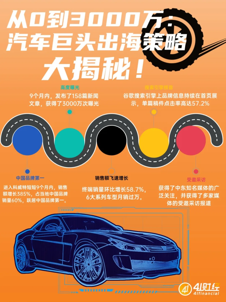 通过41财经精心设计的海外营销战略,中国汽车品牌X在竞争激烈的全球汽车市场中取得了显著的突破与成就。从品牌在中东和东南亚市场的快速树立到与当地主流媒体的紧密合作和广泛报道再到谷歌搜索上的高点击率和销售业绩的显著增长,这一系列成果彰显了品牌X在国际化道路上的坚实步伐和卓越表现。