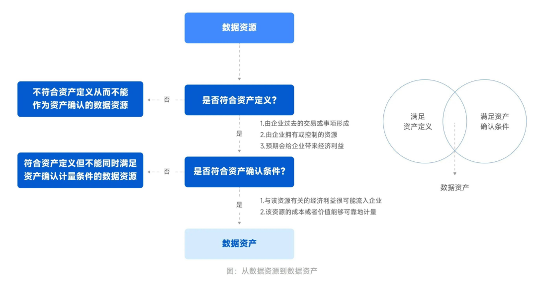 从会计视角出发,符合财政部《暂行规定》中相关要求的数据资源,可以被认定为数据资产。相似地,数据资产在会计上的确认也需要满足上文中《企业会计准则》对于资产定义和资产确认的诸条件。