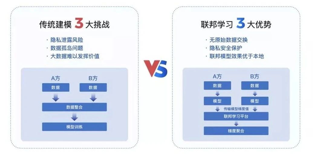 你可能会想说,那大家都把数据贡献出来统一整理后进行训练不就好了?是的,这样最简单粗暴,但在过程中不但有商业利益分配的问题,同时还有隐私保护和信息安全难以得到保证的问题,更不用说还需要符合监管规定。