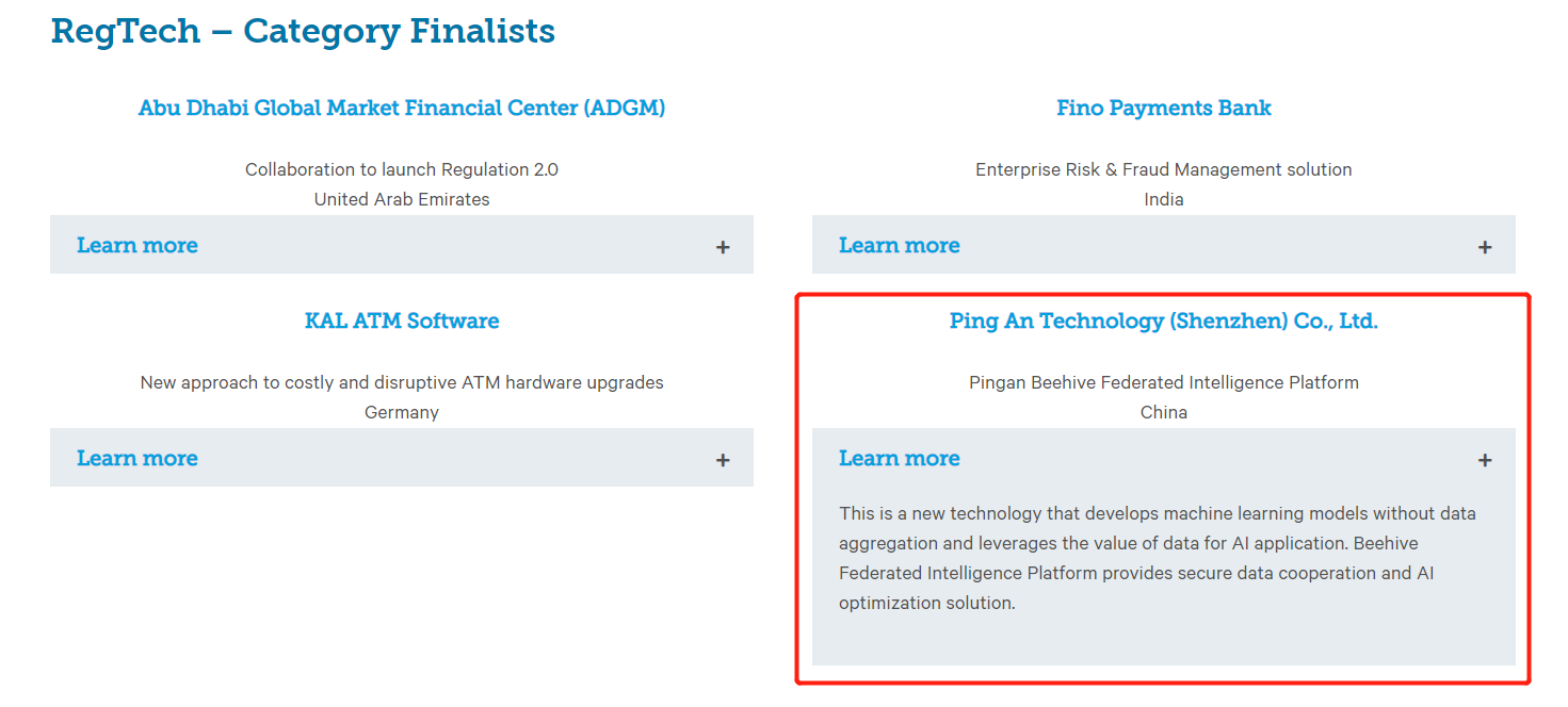 BAI 全球创新奖旨在对全球各地的领先金融机构进行嘉奖,目前已经步入第 10 个年头,我们注意到,平安是本届全球创新奖获奖者中唯一一家来自中国的科技企业。