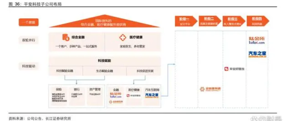 平安金融科技布局两条主线:科技赋能金融主业、科技子公司促进公司发展。1)科技 赋能方面,数字化营销:智能拜访助手、AI 短视频跟拍工具、平安寿险“金管家”APP; 数字化提效:AI 技术赋能人工坐席;数字化风控:平安寿险智能投保双录、理赔智能审 核系统、产险鹰眼系统 DRS2.0、平安企业宝等技术平台;2)科技子公司方面,主要有 陆金所、金融壹账通、平安好医生、汽车之家等科技子公司。在普惠金融、金融科技、 医疗健康、汽车互联网平台四大领域均做到了行业领先。